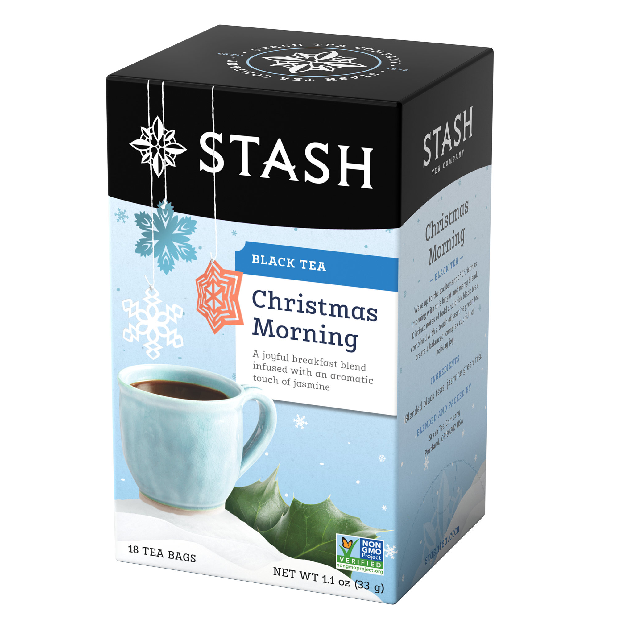 Not just for Christmas! Christmas Morning is a great balance of brisk & sweet. This full-bodied blend of green and black teas is a new take on traditional breakfast teas like English Breakfast. Enjoy it hot or iced, with milk & sugar or honey or plain.